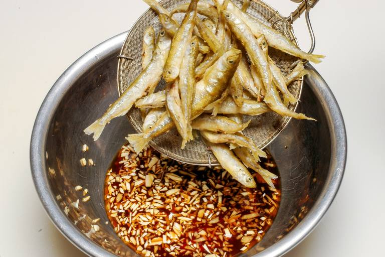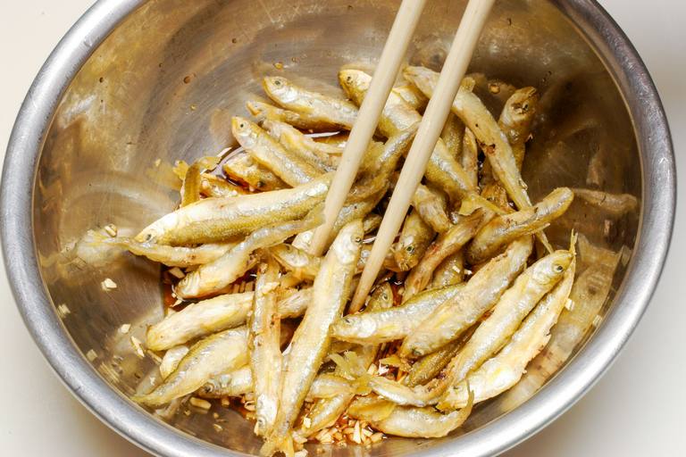 揚げたワカサギはそのままでも美味しいが、熱々を醤油やたれに漬け込むだけで、さらに違った味わいが楽しめる。