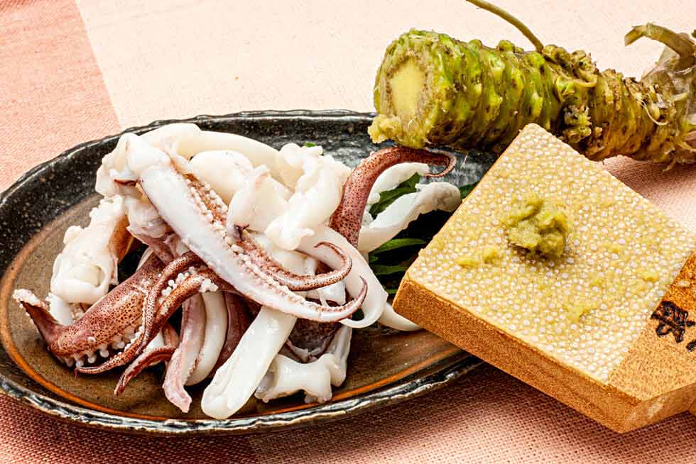釣りの対象となるイカ類の中でも、ねっとりとした甘みで評価の高いヤリイカ。ストレートな美味しさがある分、種々の和え物でバリエーションを作ると味の変化を楽しめる。