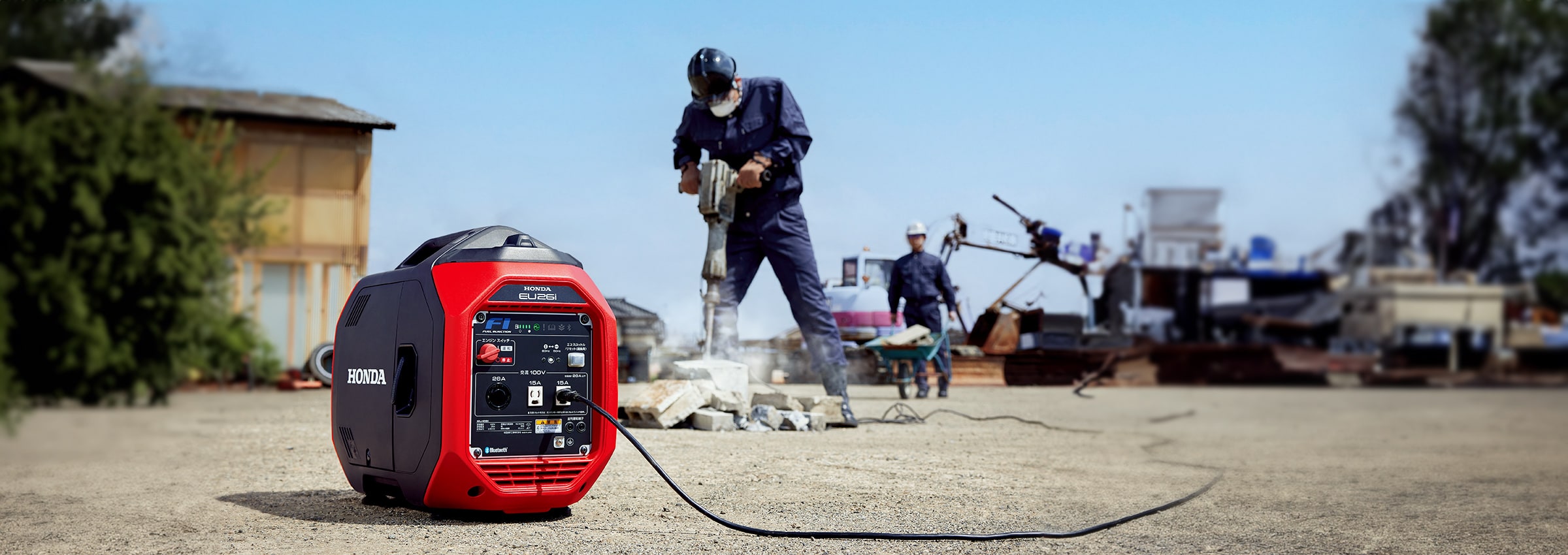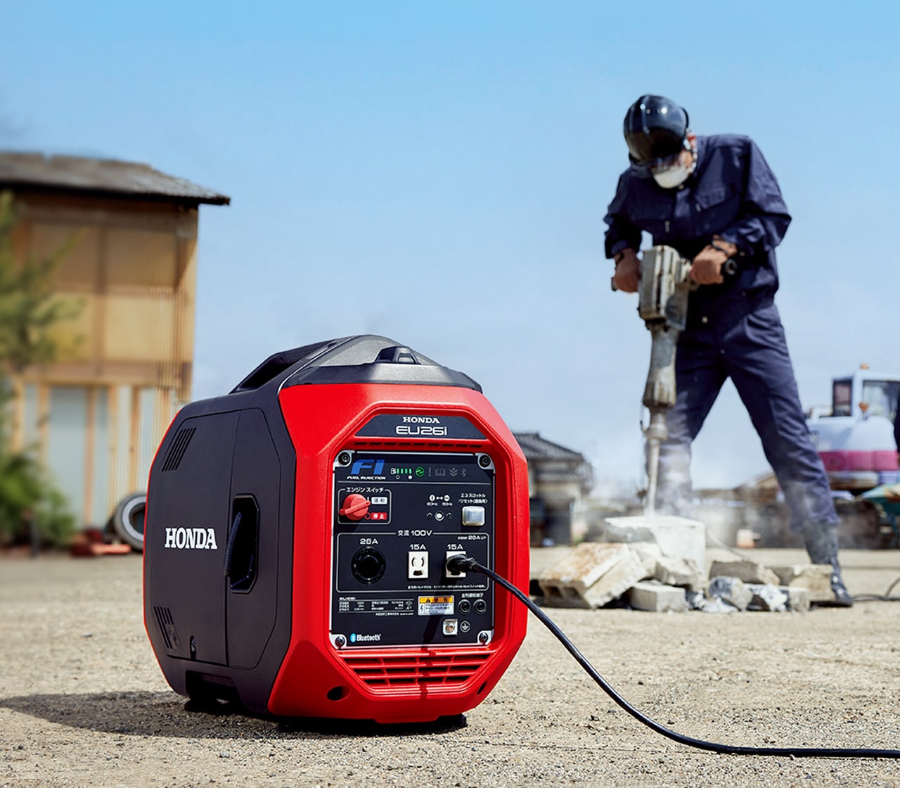 このマークが掲載されているHonda発電機は、国土交通省が定める騒音基準値(98dB)※ をクリアし、「低騒音型建設機械」として指定されています。「騒音規制法」に基づく、指定地域で使用可能です。