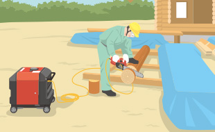 発電機は接続機器の①コードの長さ、②コードの断面積、③使用される電流、の3つによって電圧が降下します。延長コード使用時などのコードの長さ、太さは、使用される電気機器に合わせてお選びください。