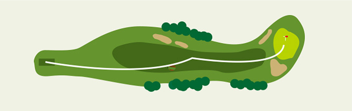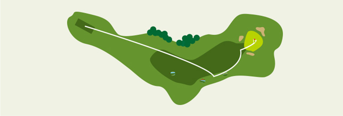ティショットは右サイドに飛び、カート道脇のつま先上がり斜面。ここから8番アイアンを短く持って打ち、グリーンの手前まで運ぶが、アゲンストとアップヒルの影響を計算して打ったアプローチはオーバー。3メートルのパーパットが決まらずボギー。