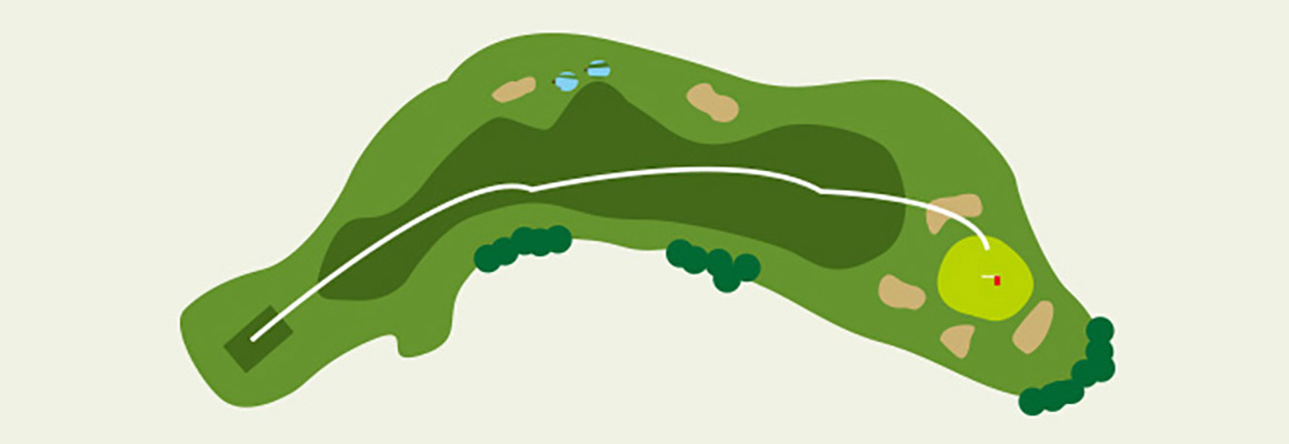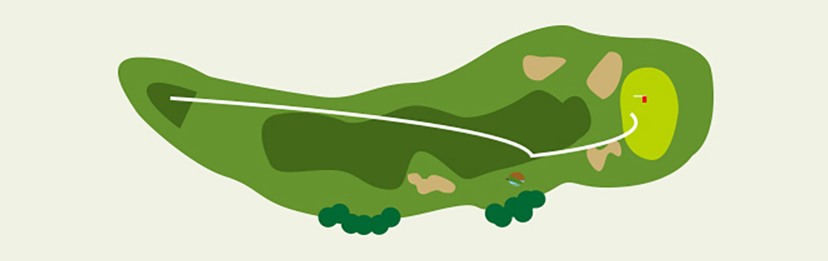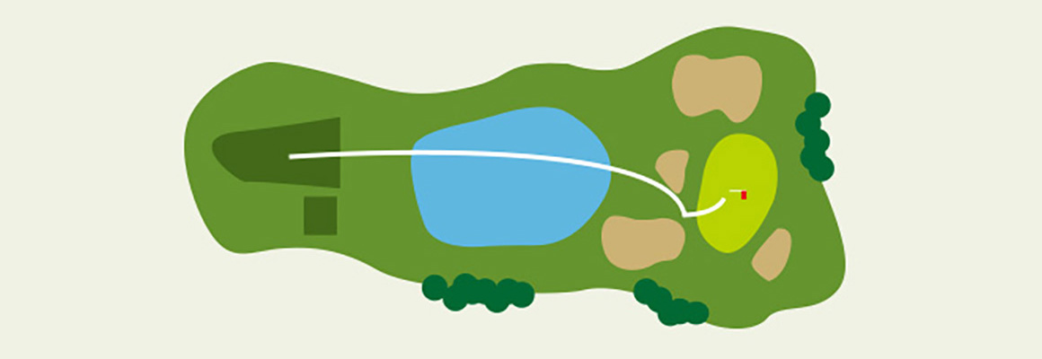 右からの風に乗せてフェアウェイ左に持っていくイメージでティショットを打つ。フェアウェイセンターをとらえ、スプーンでつないだ3打目はピンまで100ヤード。やや左足下がりでアゲンストという状況から、ピッチングウェッジで抑え気味に打ちピンの左2メートル半につける。絶好のチャンスだったがカップの手前で右に切れバーディならず。