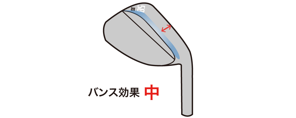 トレーリングエッジ付近をややグラインドしてあるのでバンス効果はほどほど。フェースを開かずに使う人に合うが、開いて使うこともできる。