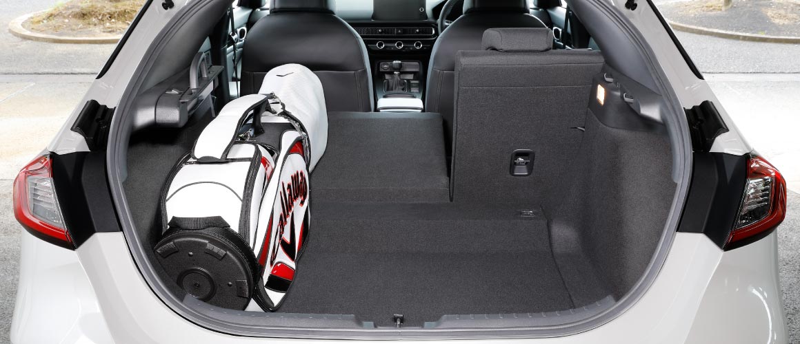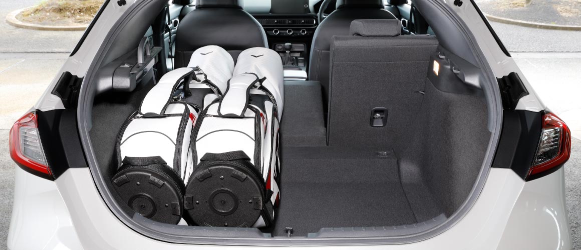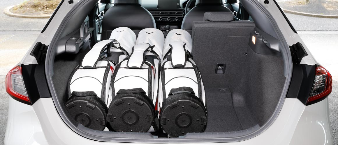 3個目のバッグもヘッド側から入れ、シート側に並べ置きます。右サイドの空いたスペースには、ボストンバッグなどを載せられます。