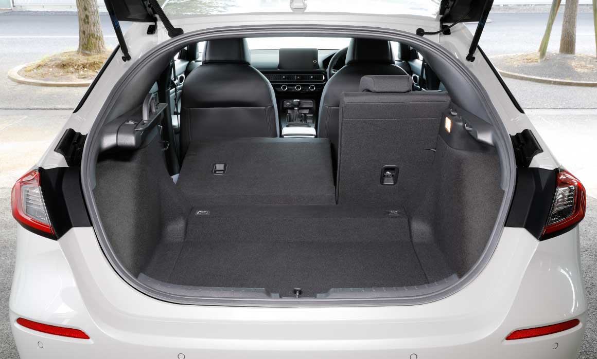 リアシート肩口の操作レバーを引くだけのワンアクションで、6:4分割可倒式リアシートの左側背もたれを前に倒して、荷室スペースを拡大。