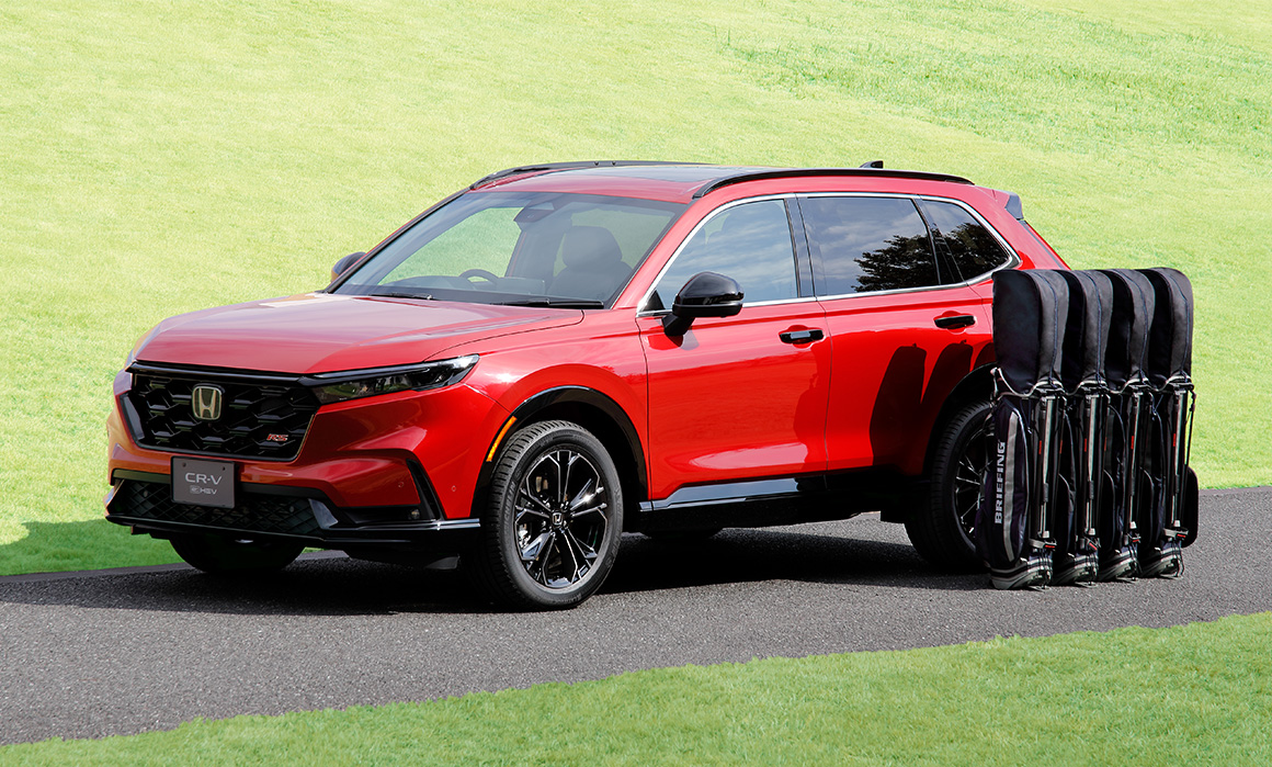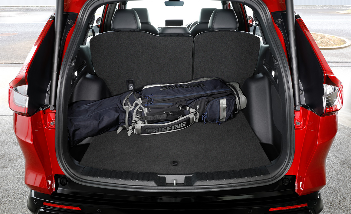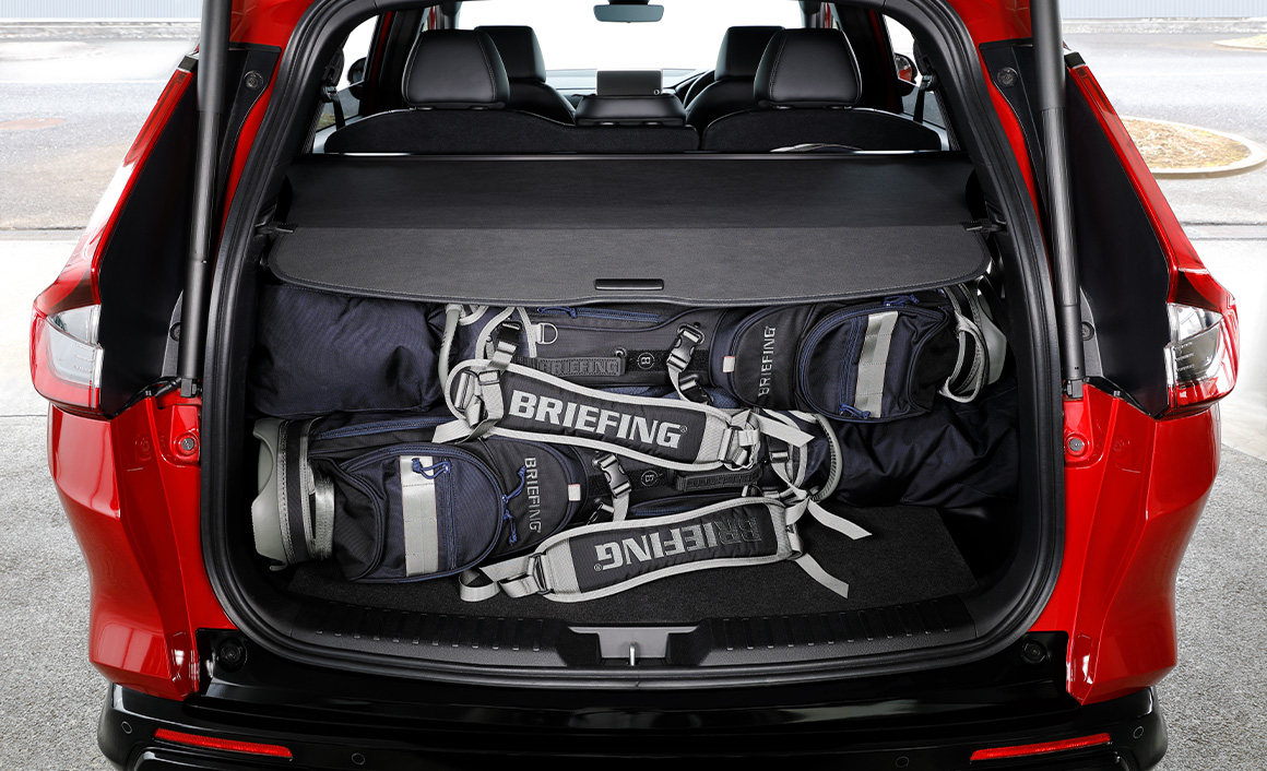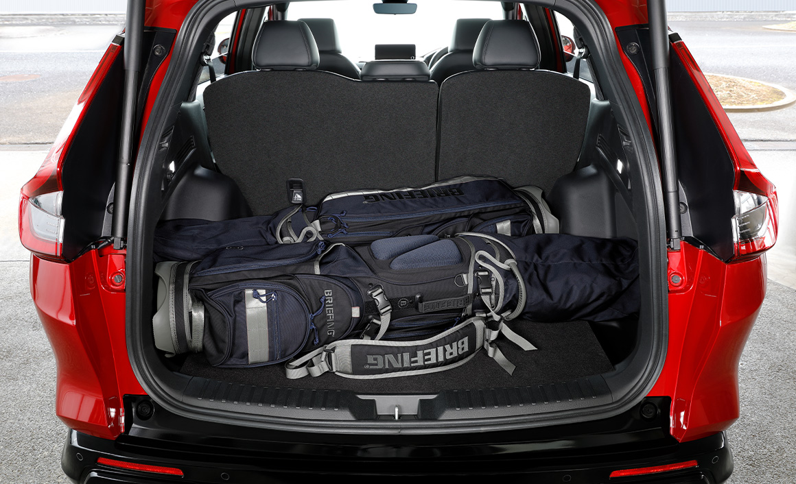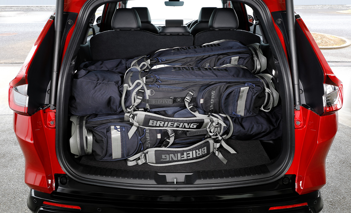 CR-Vの大容量な荷室は、9.5型のゴルフバッグ4個をしっかり積載できます。ハンズフリーアクセスパワーテールゲートを標準装備のうえ、大きな開口部と低い床面で、バッグの積み下ろしもラクラクです。