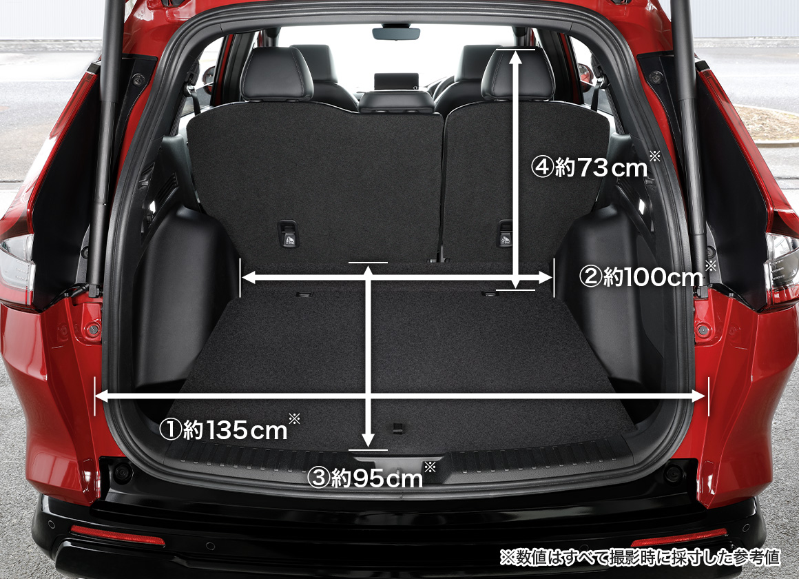 ①荷室最大幅/ ②荷室幅(ホイールハウス間)/③荷室長/④荷室床面〜後席ヘッドレストの高さ