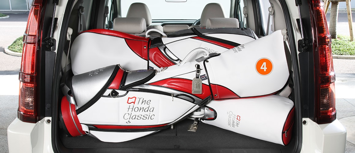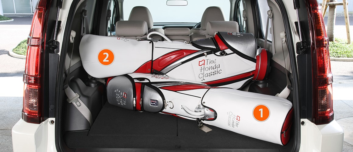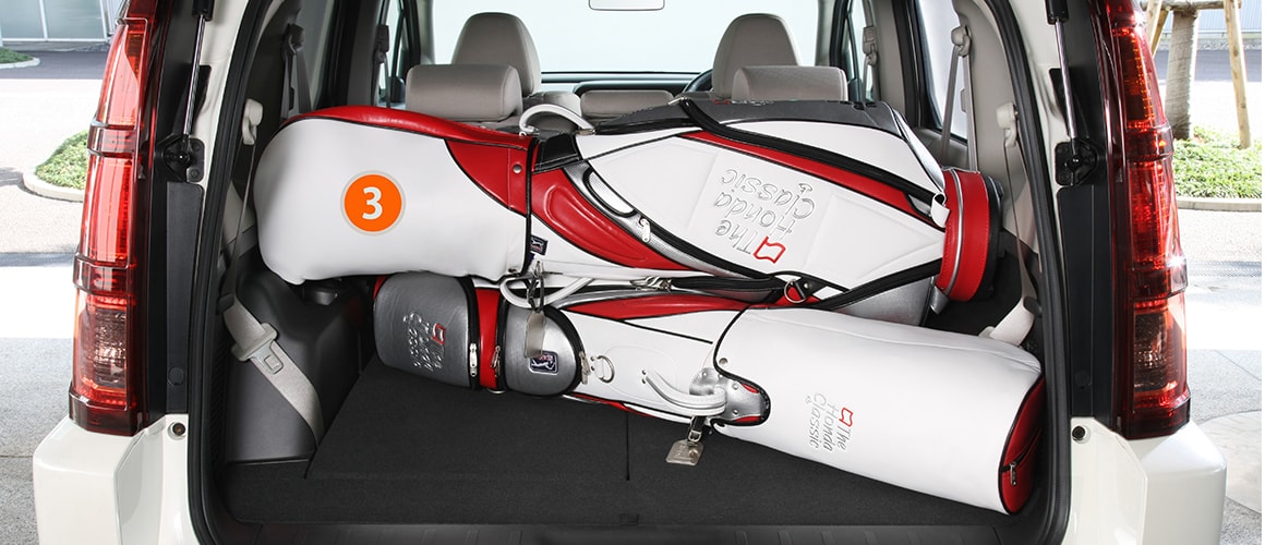 ゴルフバッグのポケット部を隙間スペースにうまく収めるのがコツ。