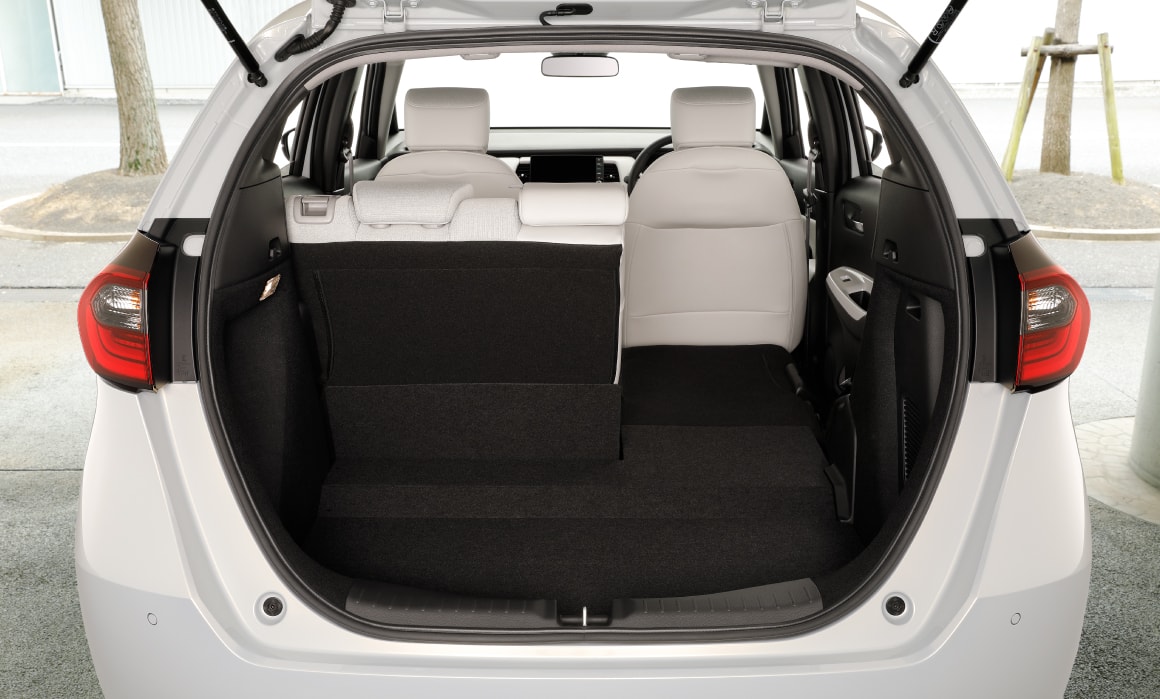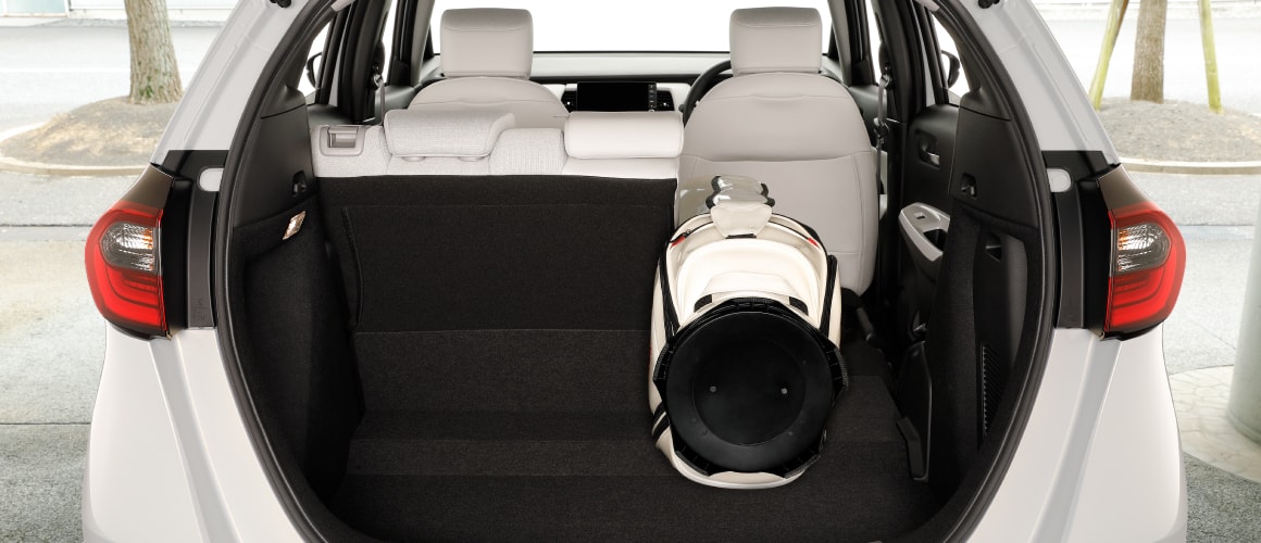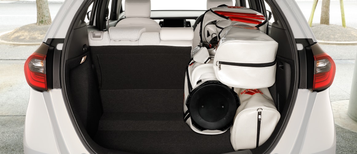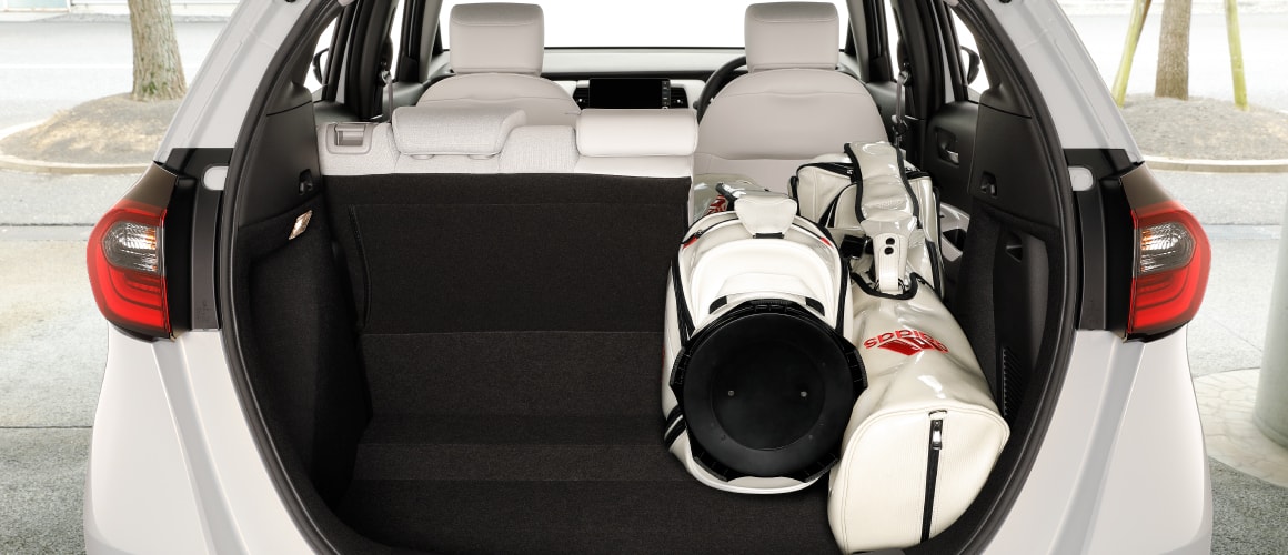 低床で大容量の荷室は、後席を簡単操作で倒すことができ、さらに使い勝手を拡大。ゴルフバッグ3個を余裕で載せられ、出し入れもスムーズです。左側のスペースは、ボストンバッグやシューズケースを載せるなど、フルに活用できます。
