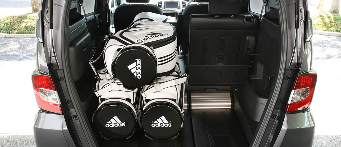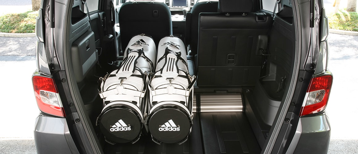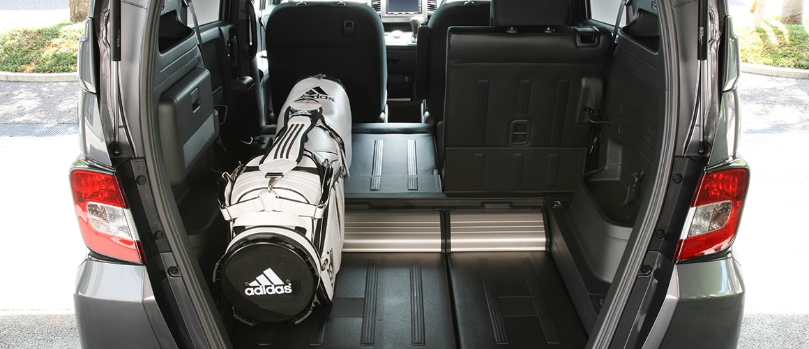 また、倒したリアシート背面とフロアの段差を利用して、スロープ部分にバッグのポケット部分をフィットさせることができ、安定感が得られます。