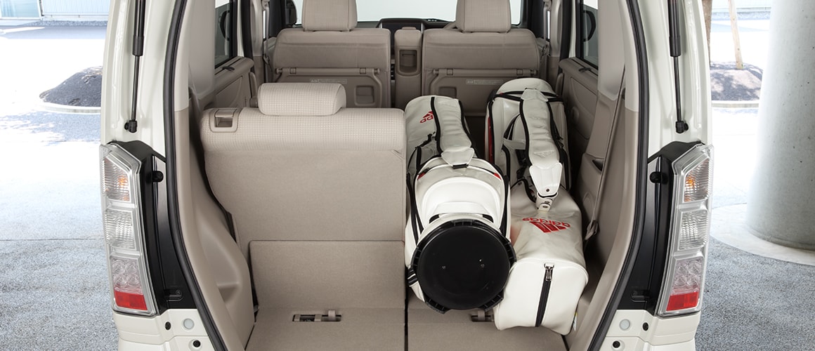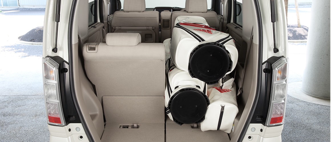 空間の広さを活かし、3個のゴルフバッグとともに、ボストンバッグやシューズケースなどを載せるスペースも余裕で確保できます。