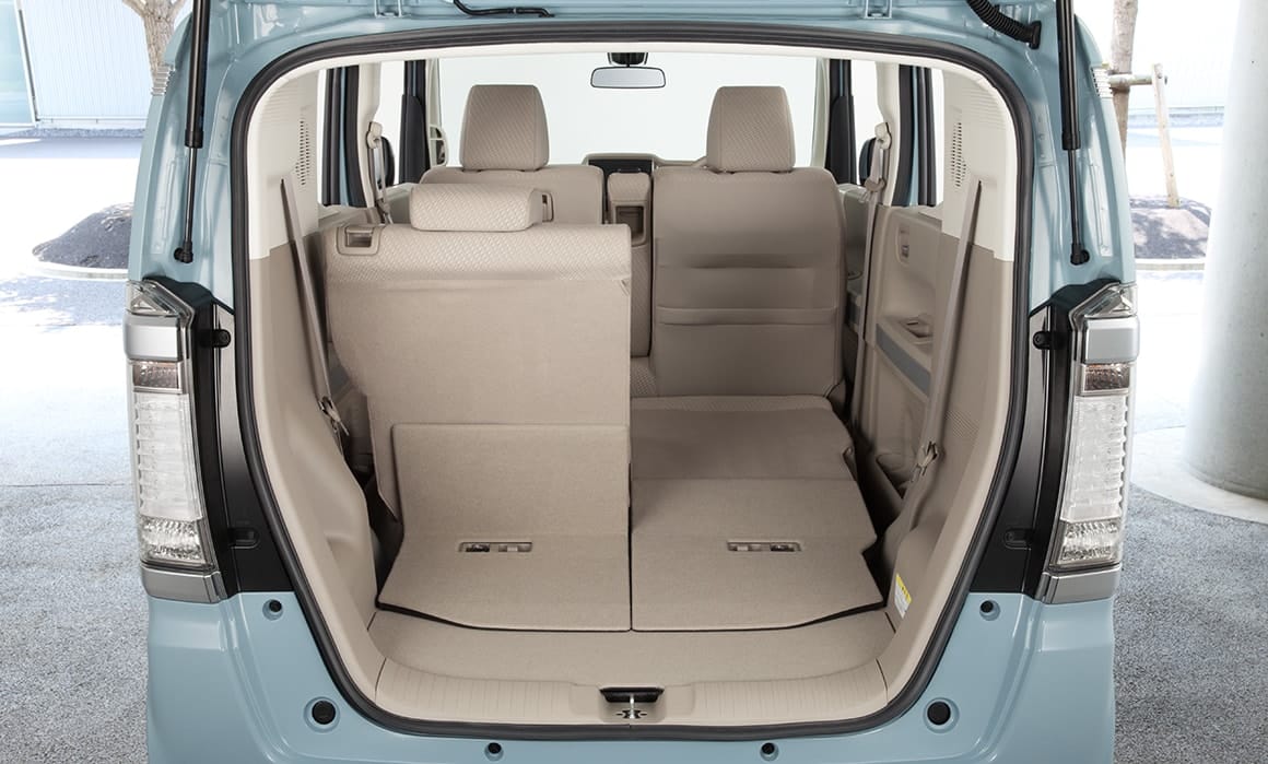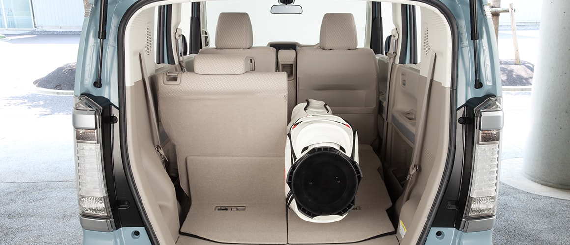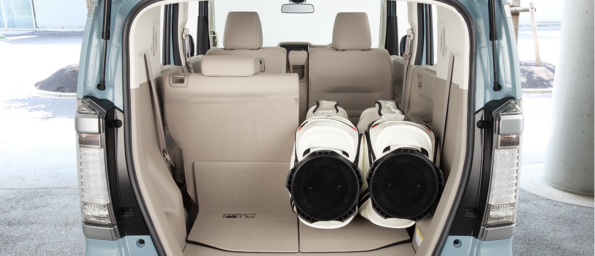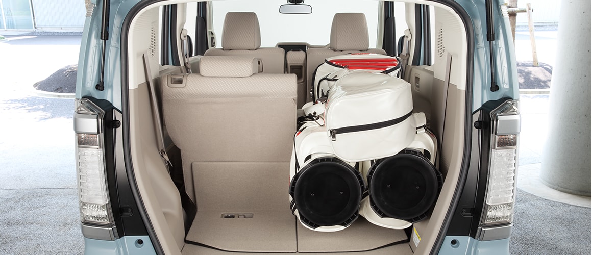 荷室内のタイヤハウスの凸部に、2個目のバッグのボトム部を載せることで、安定感がいっそう高まります。