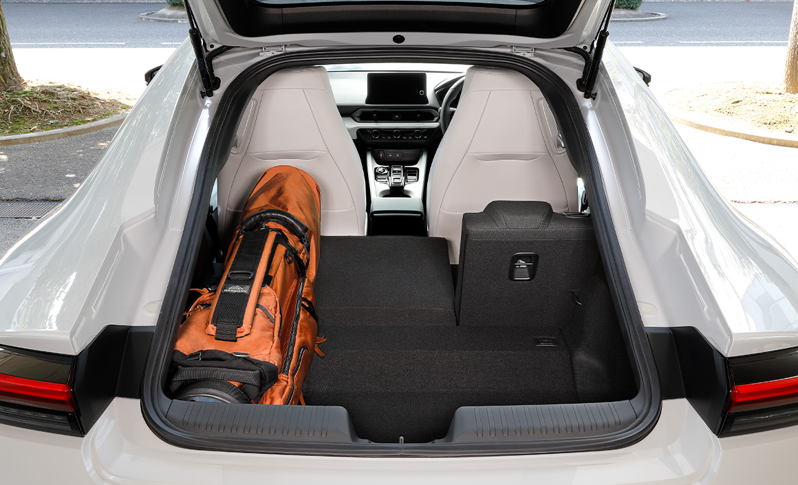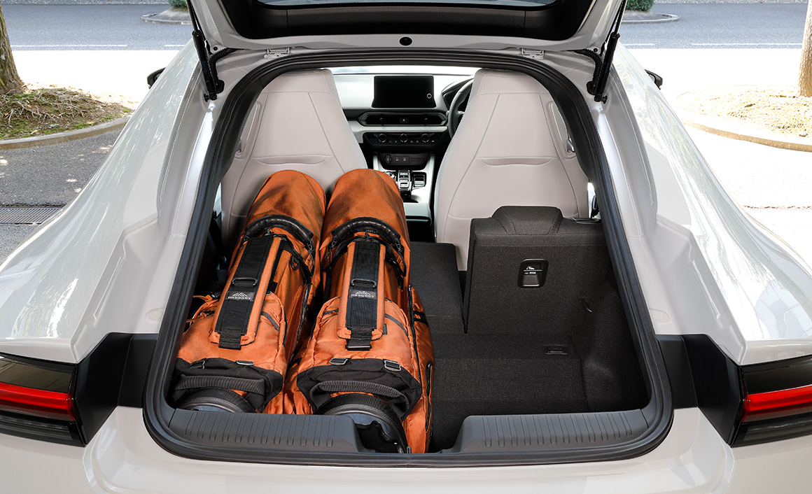 6:4分割可倒式リアシートの左側を前に倒して、荷室スペースを拡大すれば、ゴルフバッグ2個を並べて積載できます。