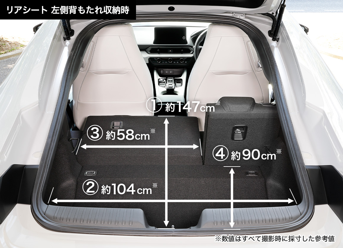 ①荷室長(リアシート左側収納時) / ②荷室最大幅 / ③荷室幅(リアシート左側収納時)/ ④荷室長