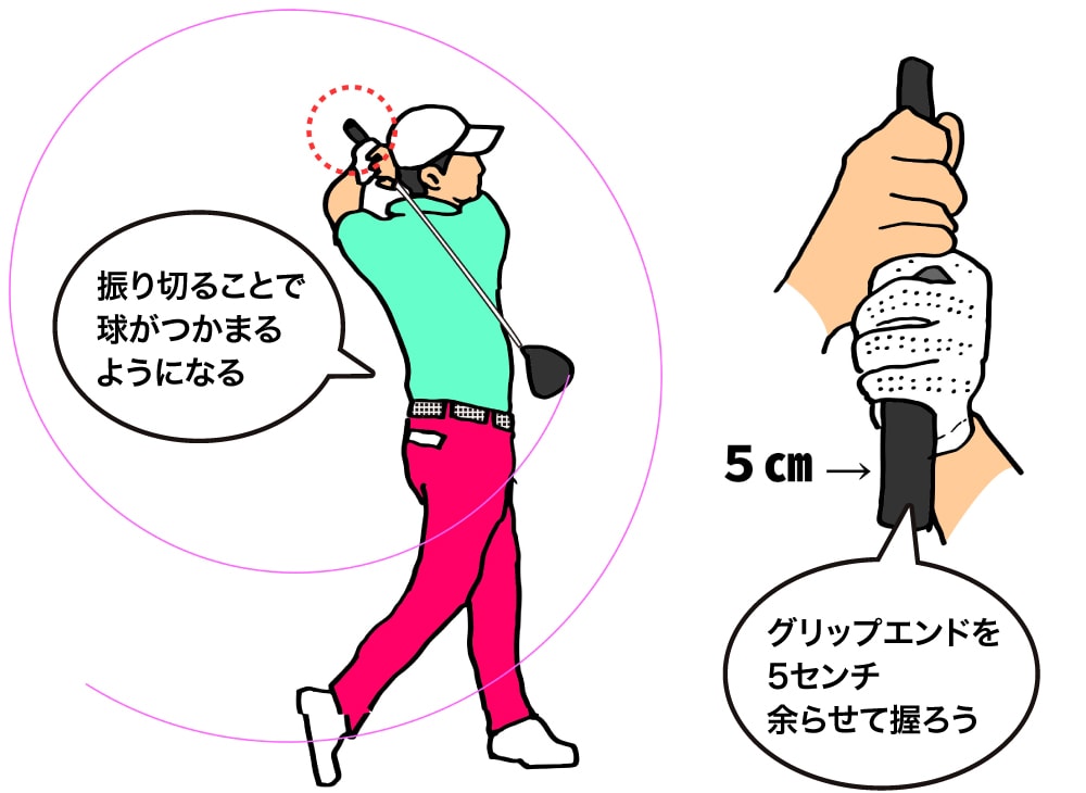 ドライバーを短く持って振り切る