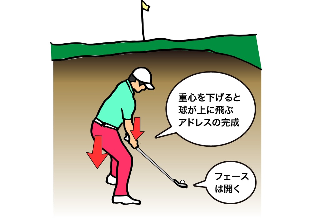バンカーショットは手元を低く構えて振り抜く