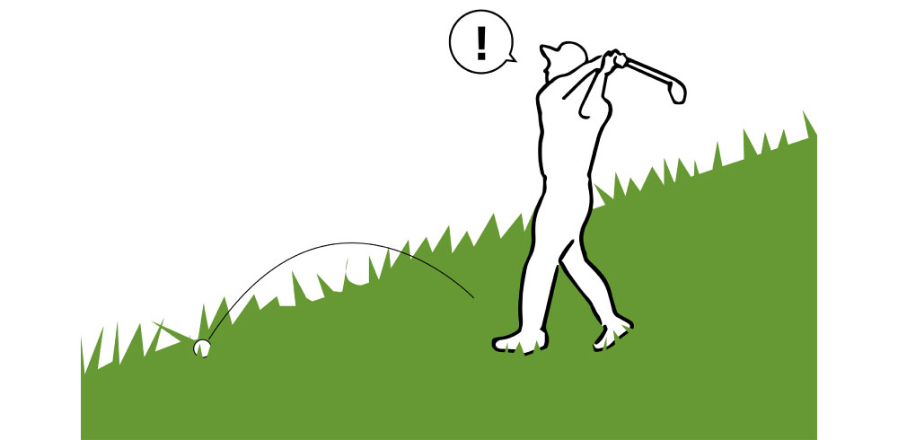 大叩きする人に多いのが、ティーショットを失敗した後にフェアウェイウッドを持ち、さらに失敗してしまうパターン。ティーショットをチョロったのはまだ許せるとしても、深いラフや強烈な斜面から3Wや5Wを打てるはずがありません。