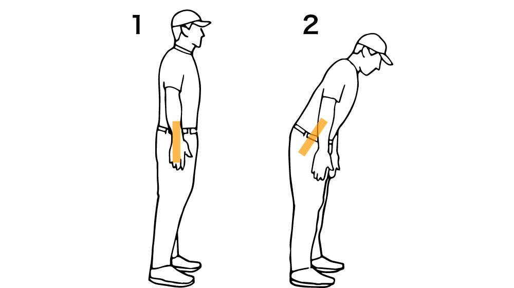 ② ヒザを曲げずに骨盤を前傾