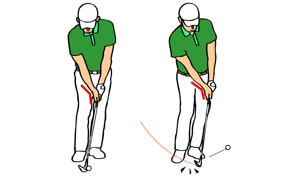 ハンドファーストに構え、手首の角度を変えずボールを潰すように打つ。