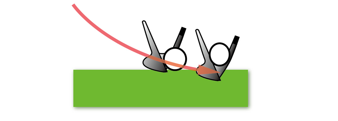 ロフト通りに構え、地面でソールを滑らせるように打つ。