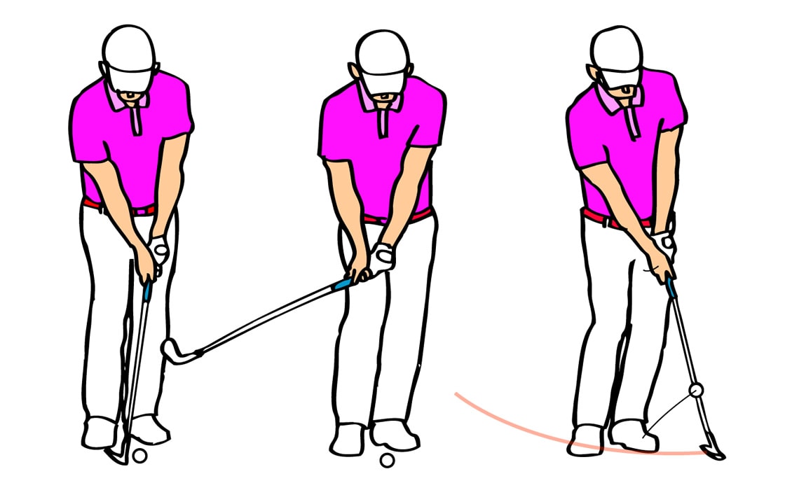 ウェッジのロフト通りに当て、手首をリリースしながら