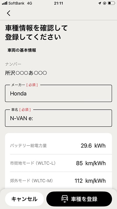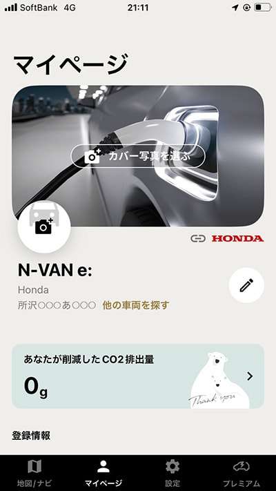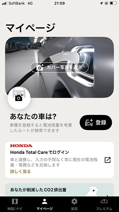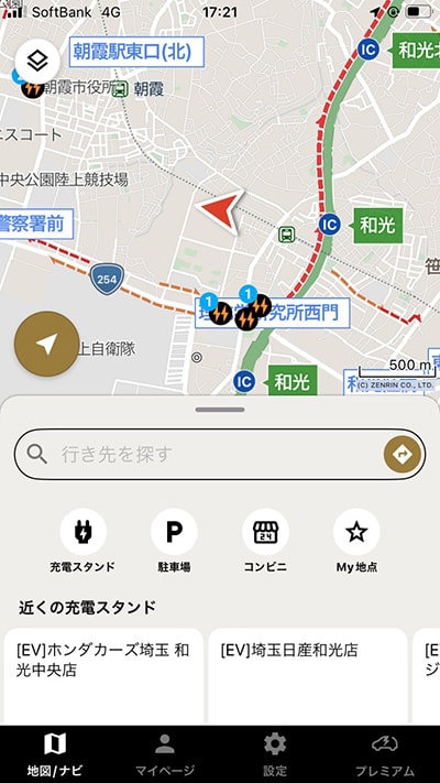 インターナビ/Honda Total Careの充電スタンドを選択します。