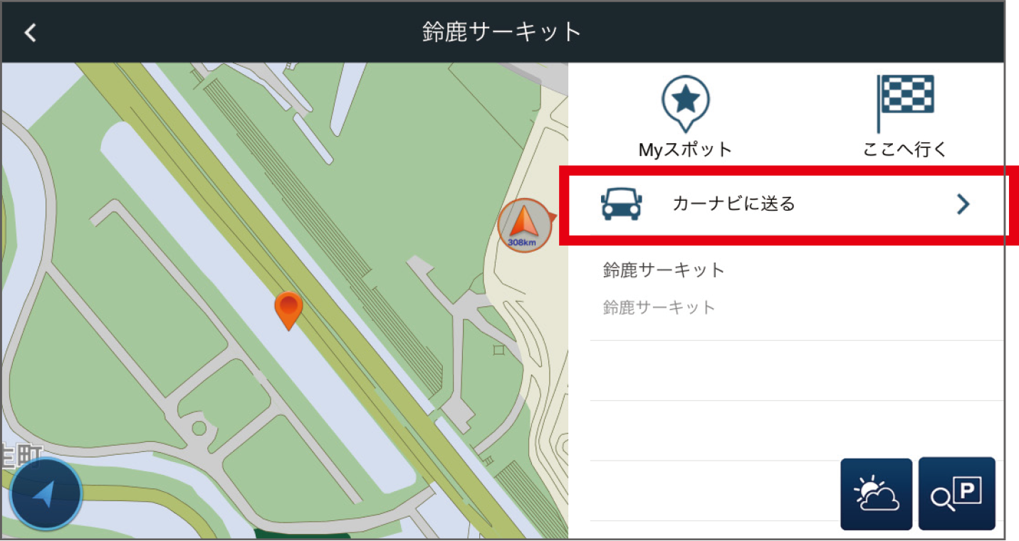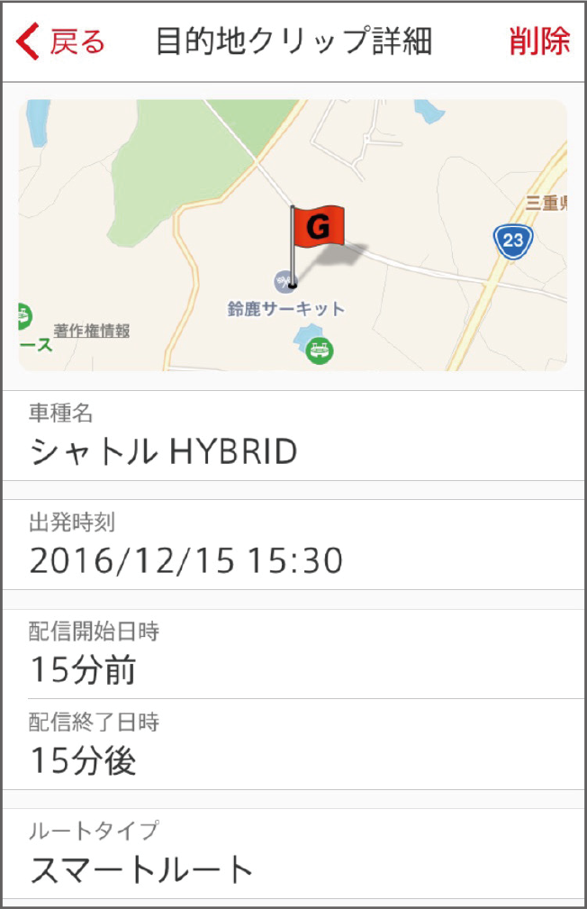 設定した目的地クリップは、Honda Total Careのトップ画面の「目的地クリップ」アイコンをタップして確認できます。