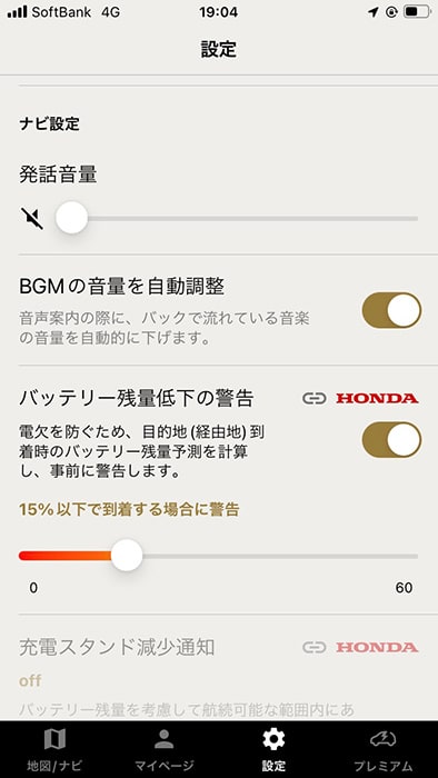 目的地到着時のバッテリー残量予測が設定値以下になった時に