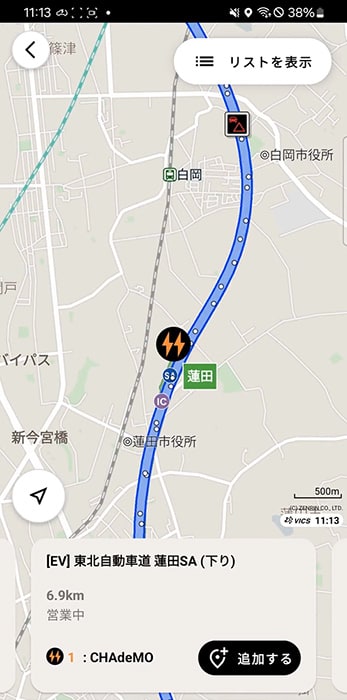 また任意の充電スタンドを選択し「追加する」をタップすると、