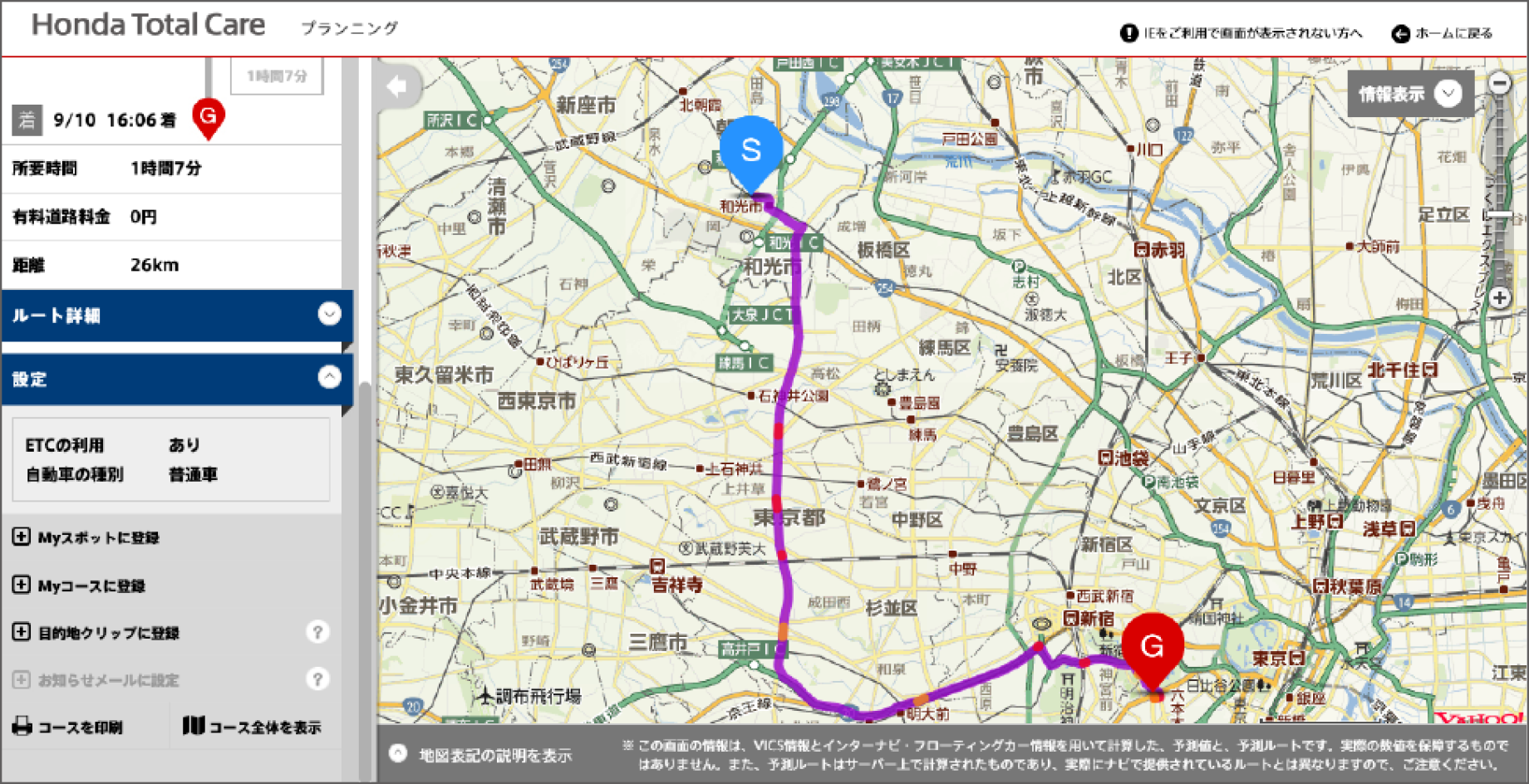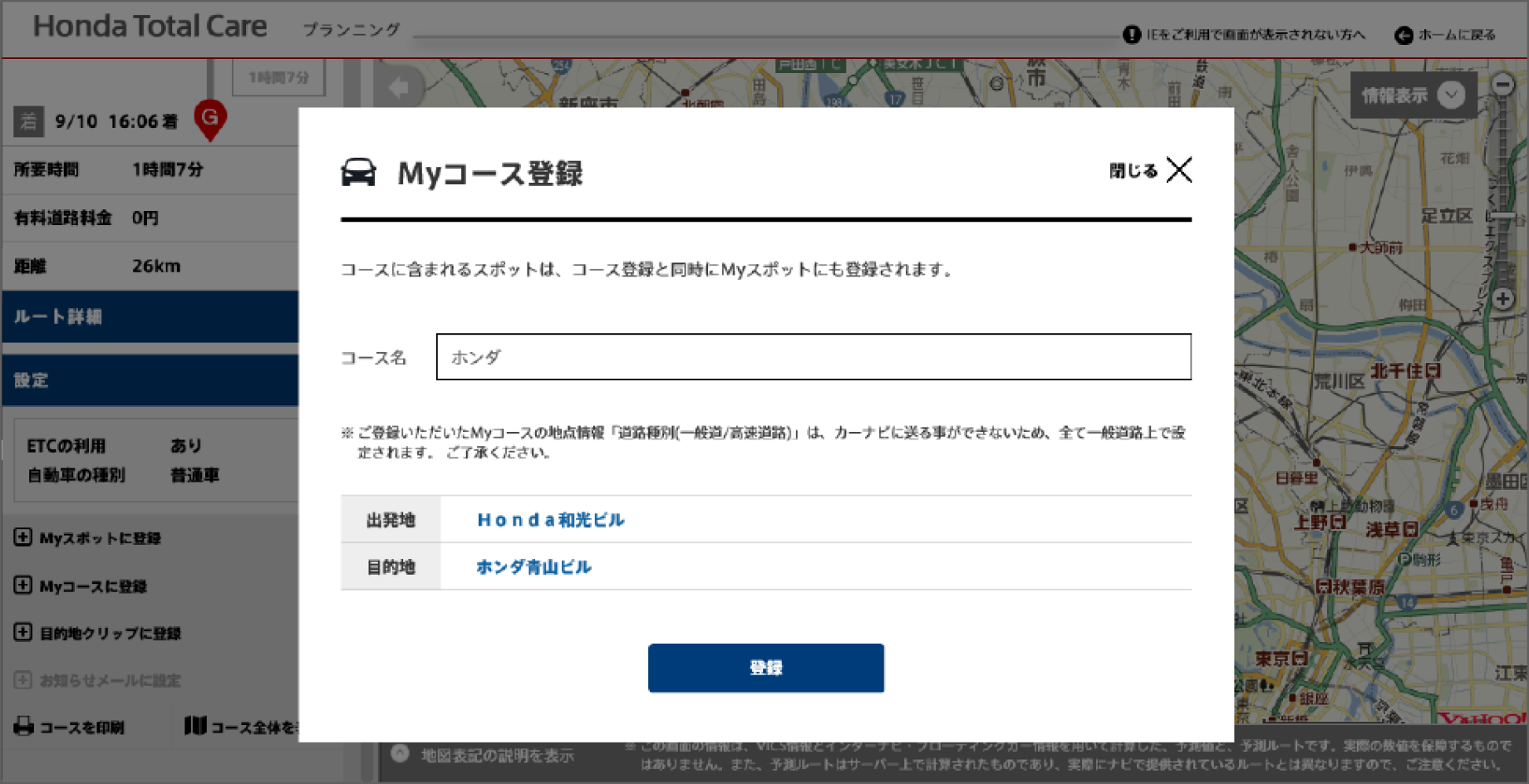 ドライブプランニングで作成したコースは、カーナビから利用できる「Myコース」として登録したり、