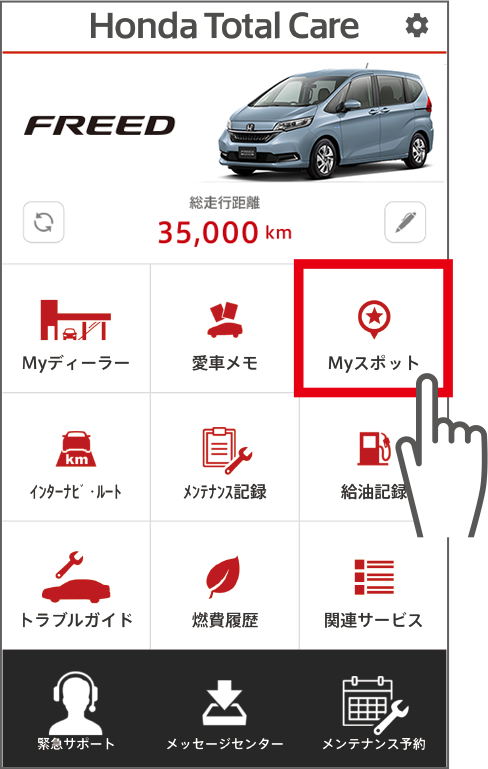 「Myスポット」のアイコンをタップ。
