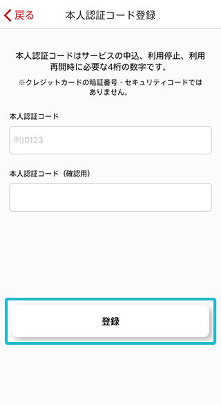 「登録する」をタップし、本人認証コード登録手続を進める。