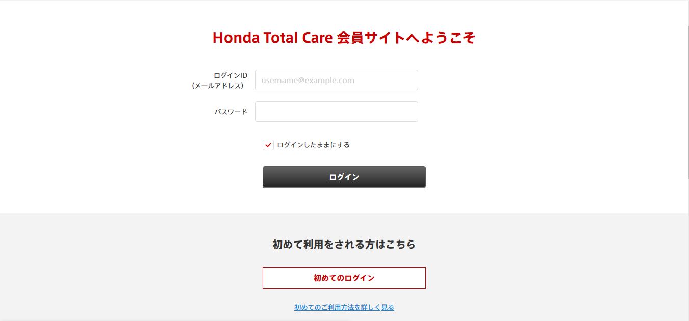 ※Honda Total Care会員サイト(パソコン向け)はこちらhttps://www.honda.co.jp/hondatotalcare/