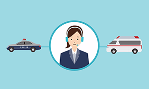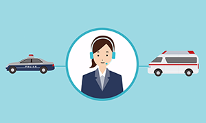 オペレーターが警察・救急への取次を行います。緊急時のサポートの流れ