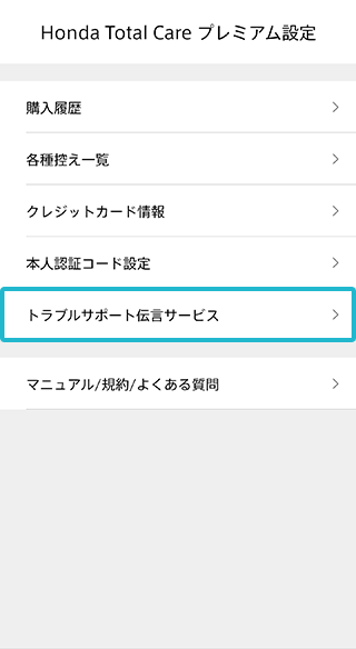 Honda Total Careアプリにアクセスし、「Honda Total Care プレミアム」を選択。