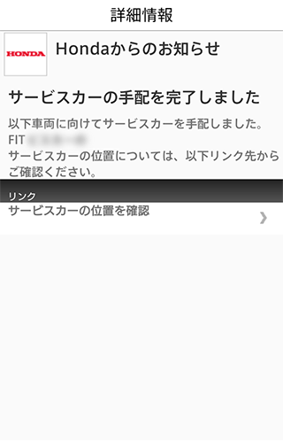 Honda Total CareアプリでJAFサービスカーの到着時間をお知らせしてくれるサービスを受けることができます。