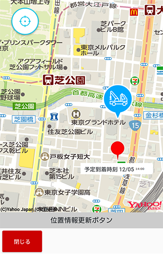 メッセージ内のリンクをタップすると、地図画面が開き、サービスカーの位置、到着予定時間を確認できます。