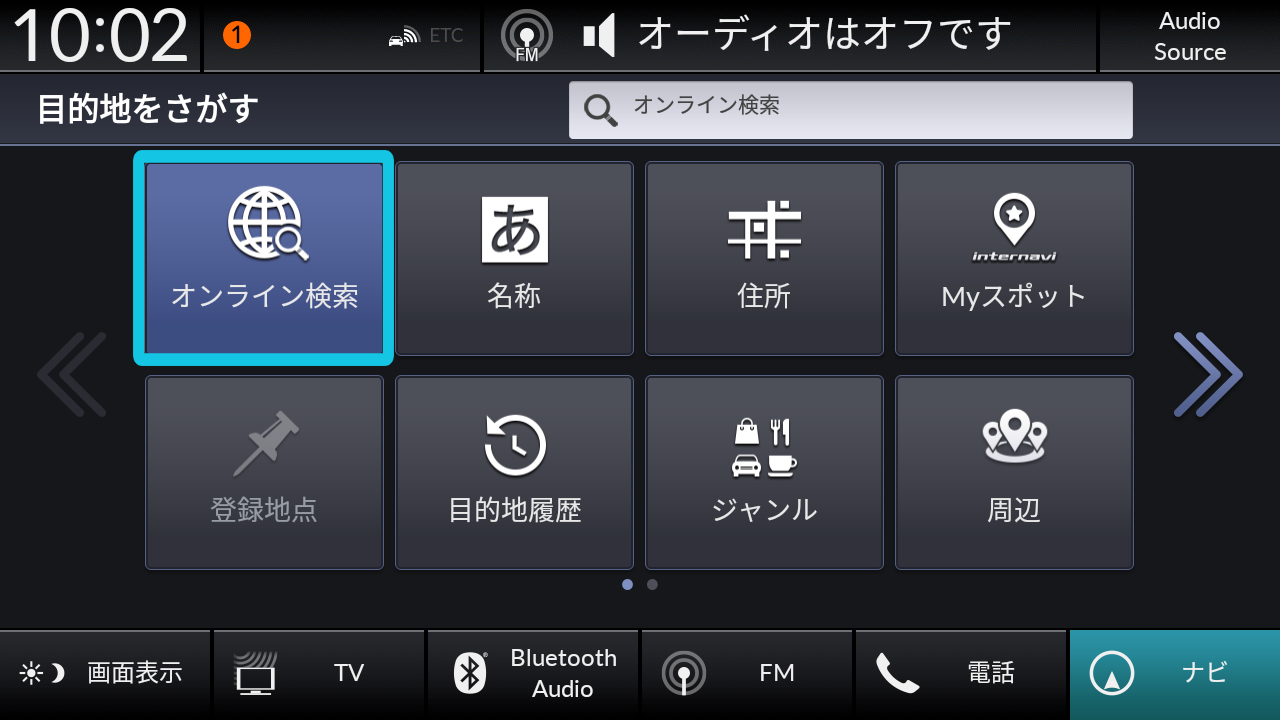 「オンライン検索」では、随時更新される“サーバーの施設情報”から目的地設定が可能です。