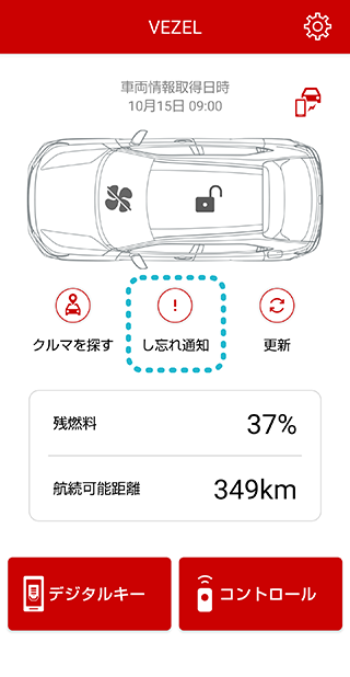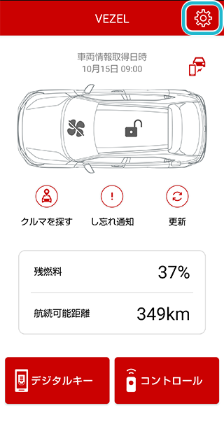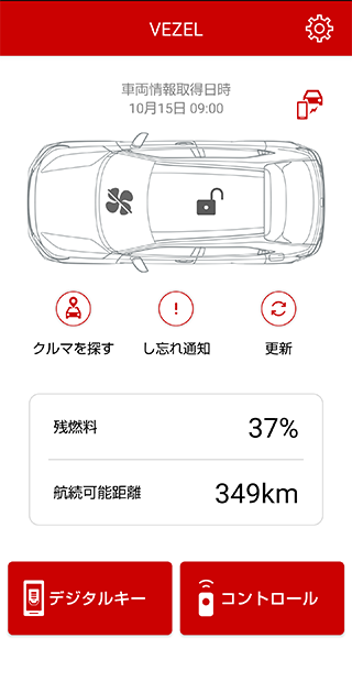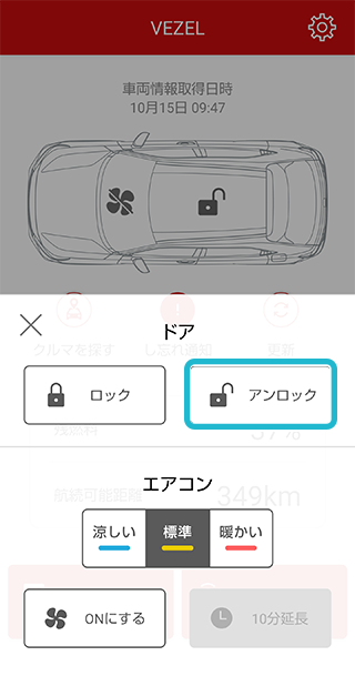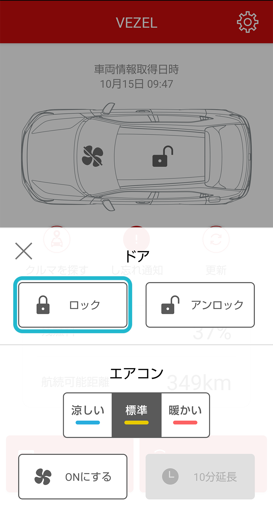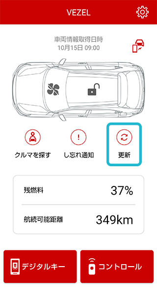 - ※クルマの状態とアプリの表示にアンマッチがある場合、TOP画面の更新ボタンをタップしてください。