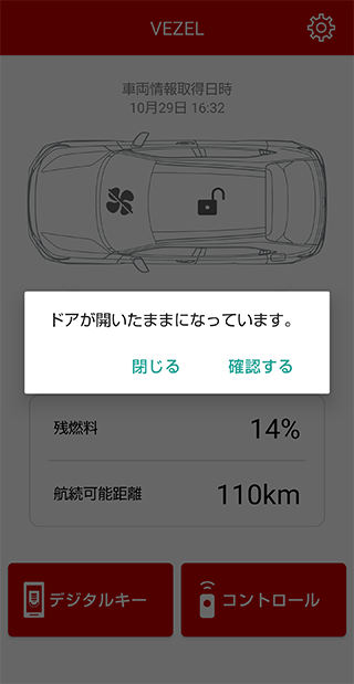 - ※アプリでの表示と実際のクルマのステータスがリアルタイムでは異なる場合がございます。