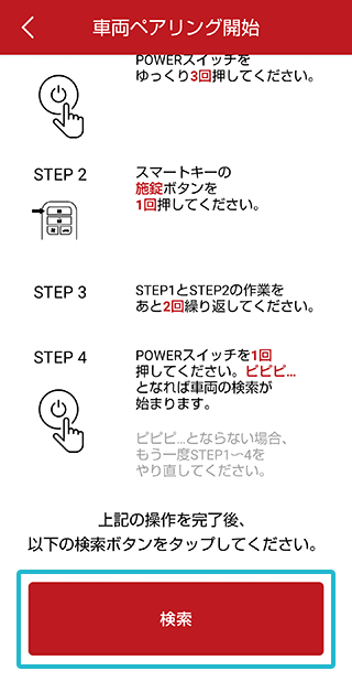 1.「5.のスマートキー施錠ボタンを1回押す」からSTEP1~4を行う。