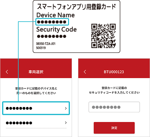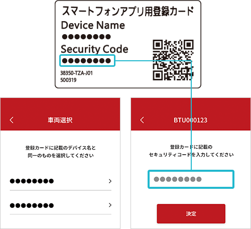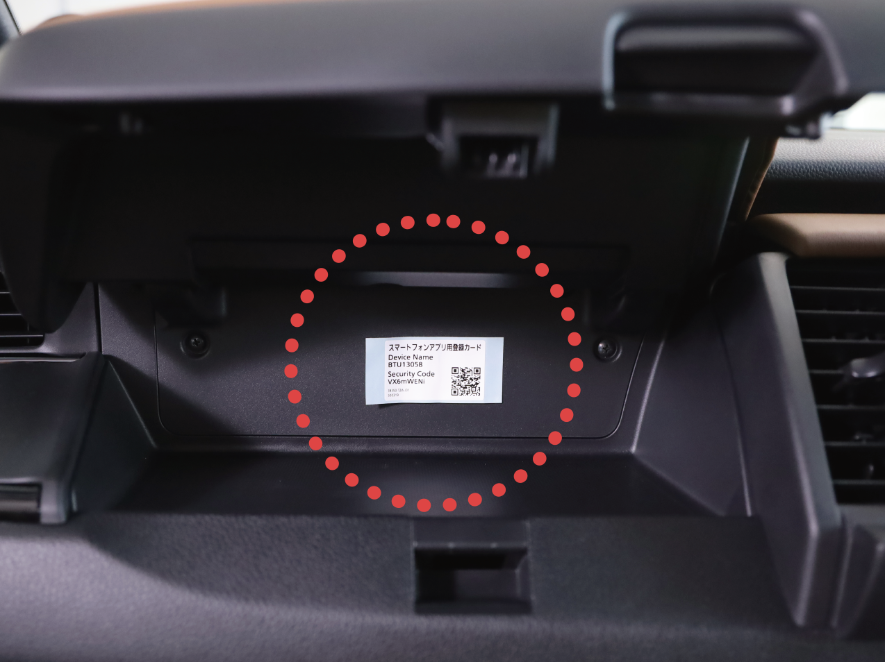 ペアリング設定後、紛失防止のため「スマートフォンアプリ用登録カード」はお客様ご自身でアッパーボックスに貼っていただきますようお願いします。