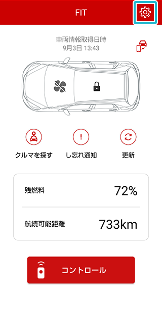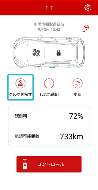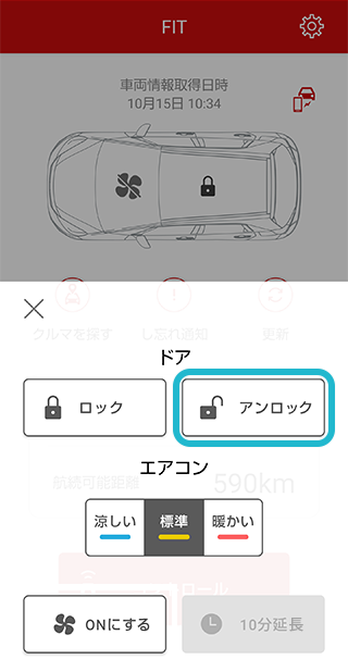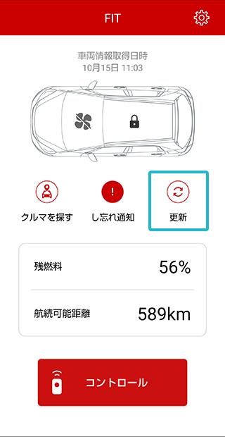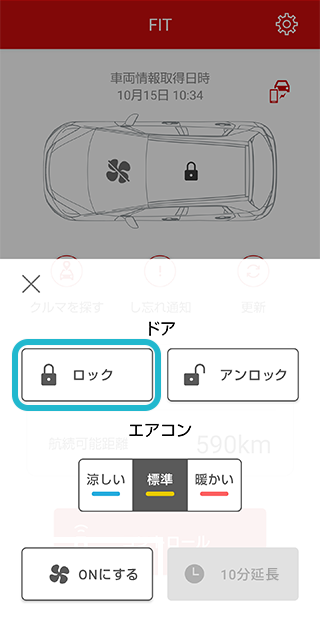 - ※クルマの状態とアプリの表示にアンマッチがある場合、TOP画面の更新ボタンをタップしてください。