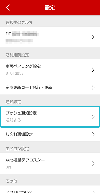 Honda リモート操作をご利用になるには、プッシュ通知をONにしてください