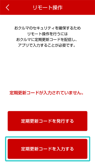 Honda リモート操作アプリに戻り、「定期更新コードを入力する」をタップ。