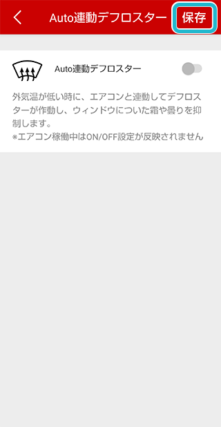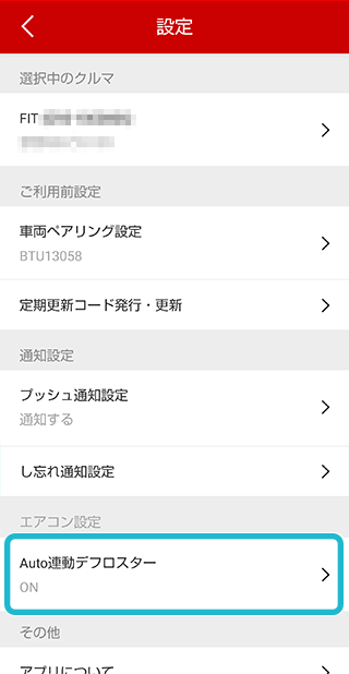 Auto連動デフロスターを設定できます。TOP画面右上「設定」をタップ。