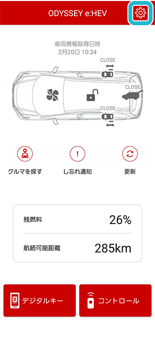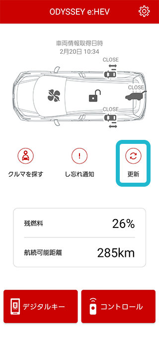 - ※クルマの状態とアプリの表示にアンマッチがある場合、TOP画面の更新ボタンをタップしてください。