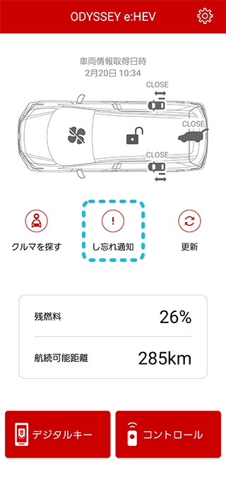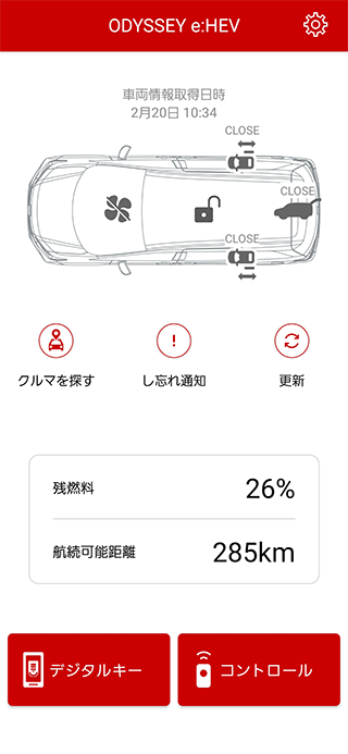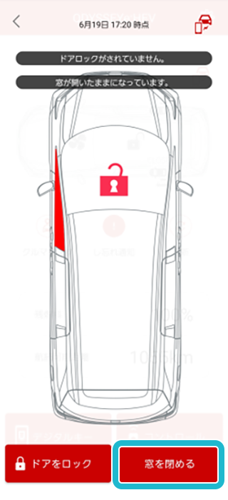 ドアロック、テールゲート、パワースライドドア、窓の閉め忘れの場合は、スマートフォンから遠隔で操作することができます。