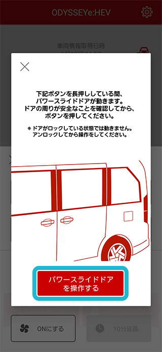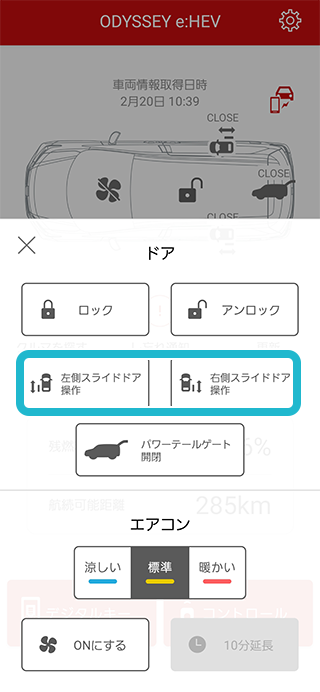 「左側スライドドア操作」もしくは「右側スライドドア操作」ボタンをタップ。