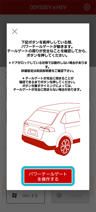 ※操作中に車両とのペアリングが切断された場合、パワーテールゲートの動作が停止します。